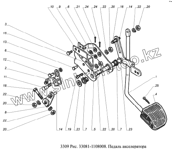 Каталог запасных частей к технике: ГАЗ-3309 (Евро 2). Педаль акселератора