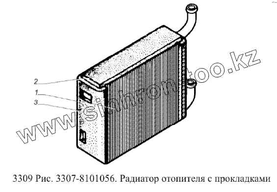 Каталог запасных частей к технике: ГАЗ-3309 (Евро 2). Радиатор отопителя с прокладками