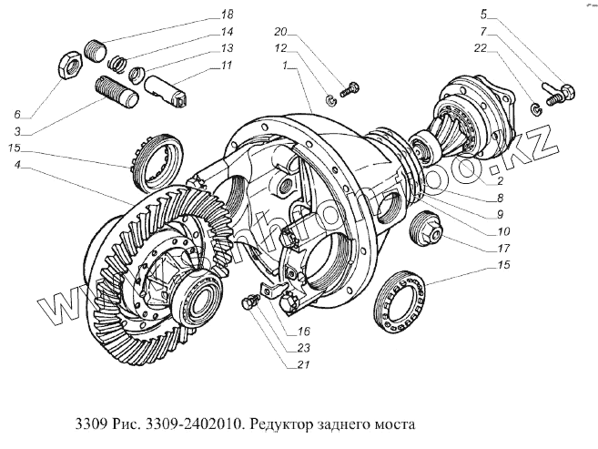 Каталог запасных частей к технике: ГАЗ-3309 (Евро 2). Редуктор заднего моста