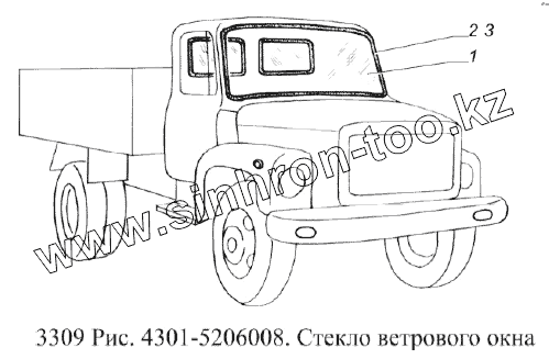 Каталог запасных частей к технике: ГАЗ-3309 (Евро 2). Стекло ветрового окна