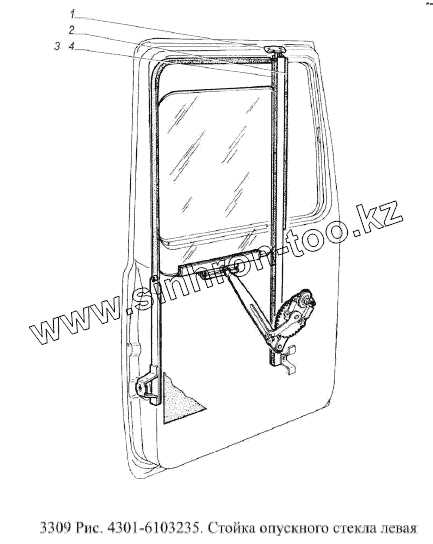 Каталог запасных частей к технике: ГАЗ-3309 (Евро 2). Стойка опускного стекла левая