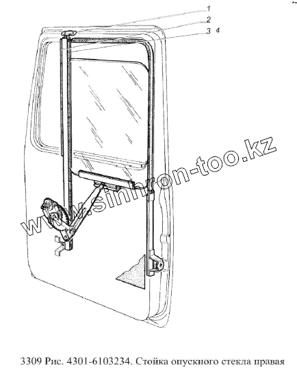 Каталог запасных частей к технике: ГАЗ-3309 (Евро 2). Стойка опускного стекла правая