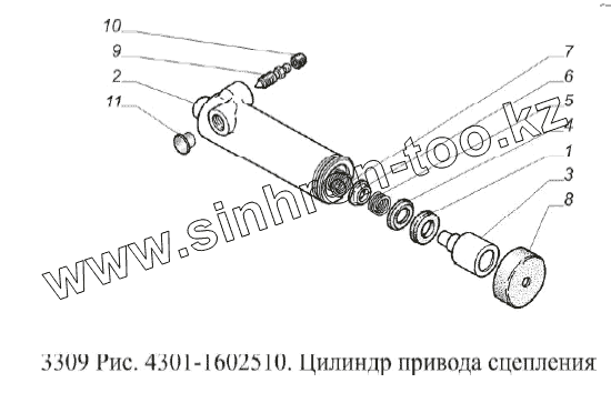 Каталог запасных частей к технике: ГАЗ-3309 (Евро 2). Цилиндр привода сцепления