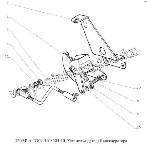 Каталог запасных частей к технике: ГАЗ-3309 (Евро 2). Установка деталей акселератора