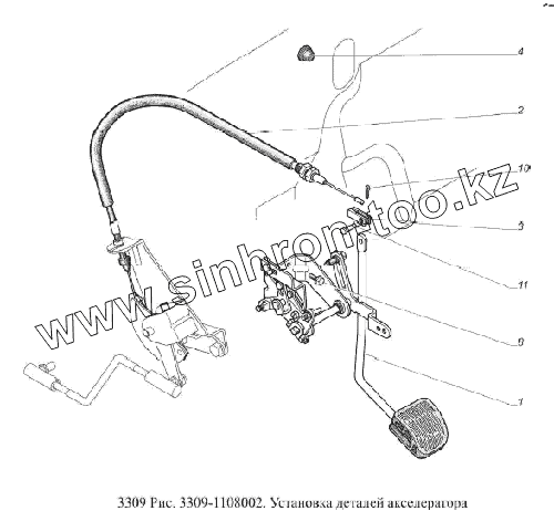 Каталог запасных частей к технике: ГАЗ-3309 (Евро 2). Установка деталей акселератора