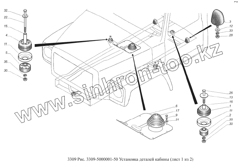 Каталог запасных частей к технике: ГАЗ-3309 (Евро 2). Установка деталей кабины
