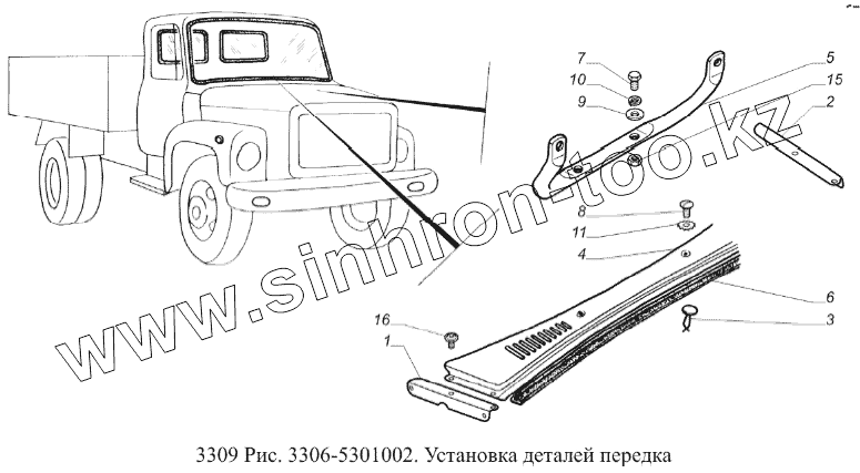 Каталог запасных частей к технике: ГАЗ-3309 (Евро 2). Установка деталей передка