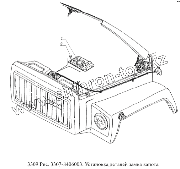 Каталог запасных частей к технике: ГАЗ-3309 (Евро 2). Установка деталей замка капота