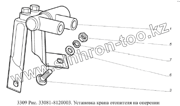 Каталог запасных частей к технике: ГАЗ-3309 (Евро 2). Установка крана отопителя на оперении