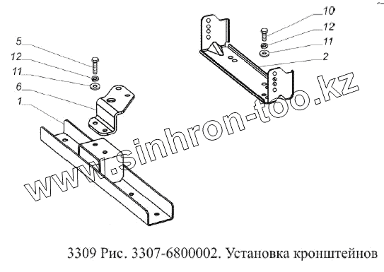 Каталог запасных частей к технике: ГАЗ-3309 (Евро 2). Установка кронштейнов