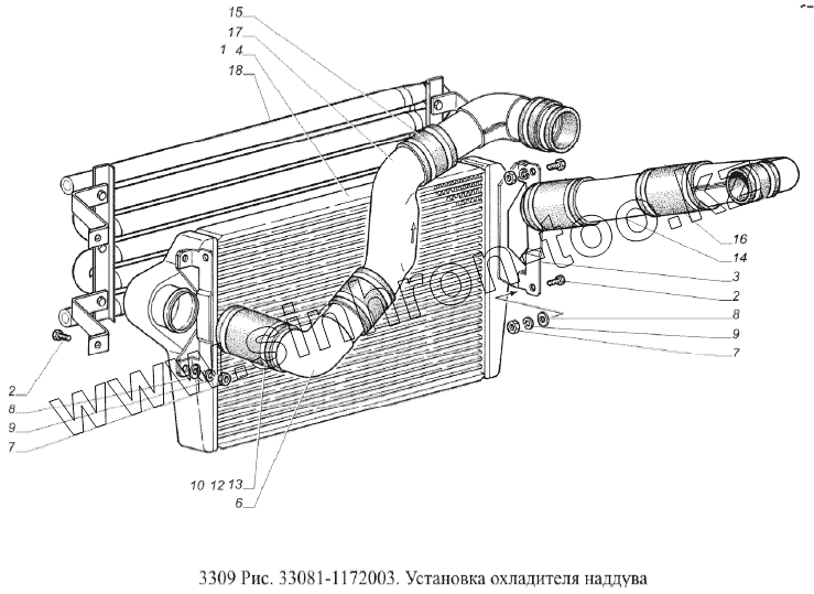 Каталог запасных частей к технике: ГАЗ-3309 (Евро 2). Установка охладителя воздуха