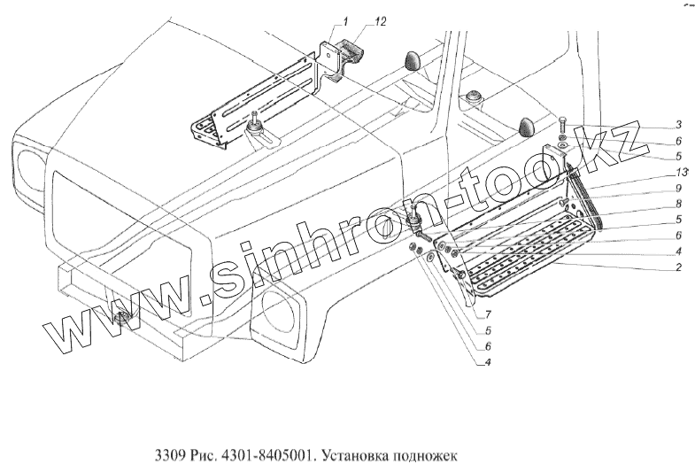 Каталог запасных частей к технике: ГАЗ-3309 (Евро 2). Установка подножек