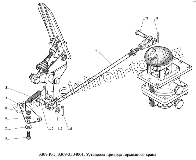 Каталог запасных частей к технике: ГАЗ-3309 (Евро 2). Установка привода тормозного крана