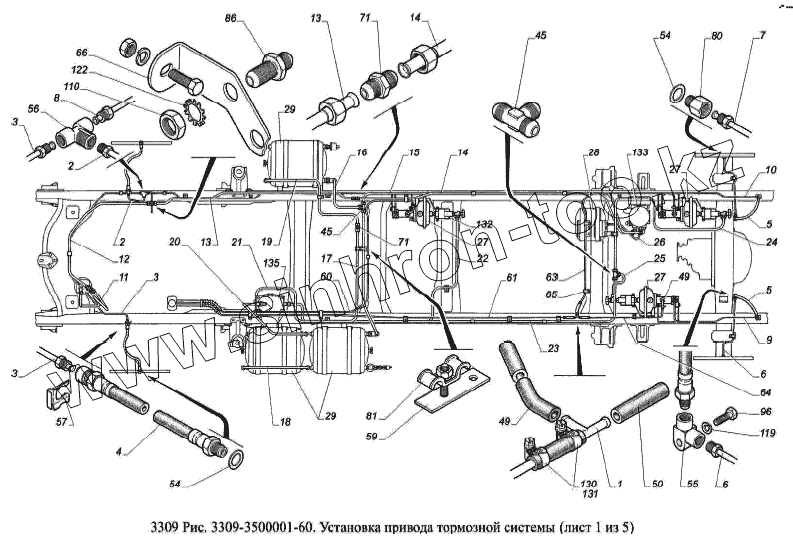 Каталог запасных частей к технике: ГАЗ-3309 (Евро 2). Установка привода тормозной системы