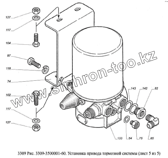 Каталог запасных частей к технике: ГАЗ-3309 (Евро 2). Установка привода тормозной системы