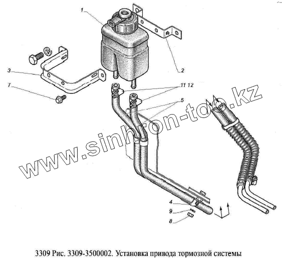 Каталог запасных частей к технике: ГАЗ-3309 (Евро 2). Установка привода тормозной системы