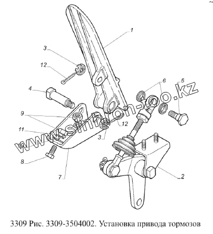 Каталог запасных частей к технике: ГАЗ-3309 (Евро 2). Установка привода тормозов