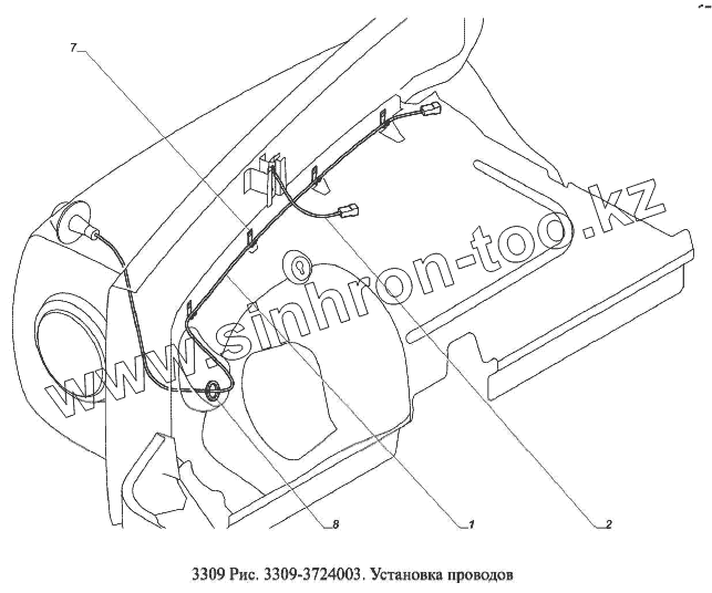 Каталог запасных частей к технике: ГАЗ-3309 (Евро 2). Установка проводов