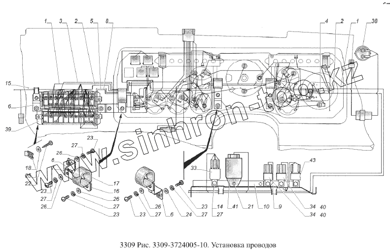 Каталог запасных частей к технике: ГАЗ-3309 (Евро 2). Установка проводов