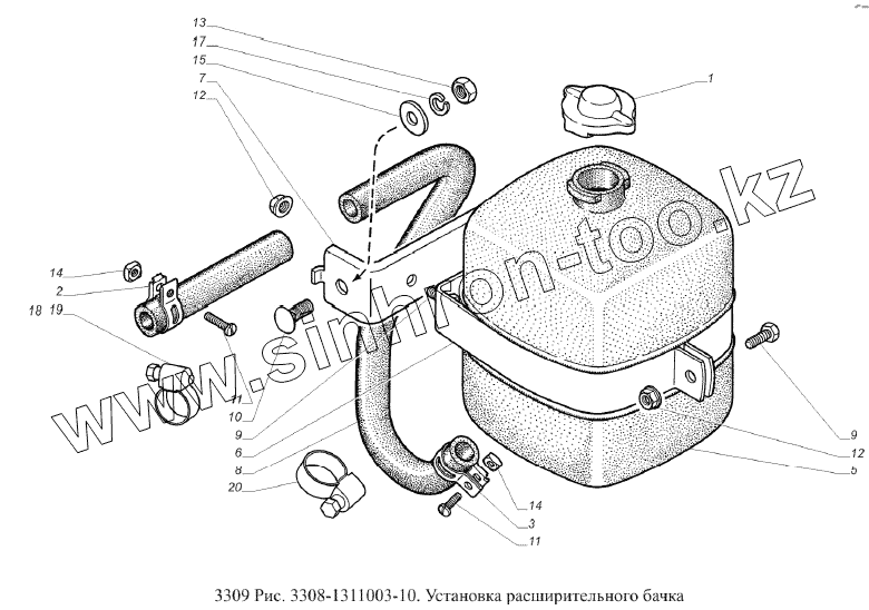 Каталог запасных частей к технике: ГАЗ-3309 (Евро 2). Установка расширительного бачка