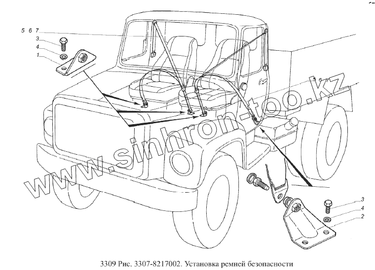 Каталог запасных частей к технике: ГАЗ-3309 (Евро 2). Установка ремней безопасности