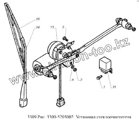 Каталог запасных частей к технике: ГАЗ-3309 (Евро 2). Установка стеклоочистителя