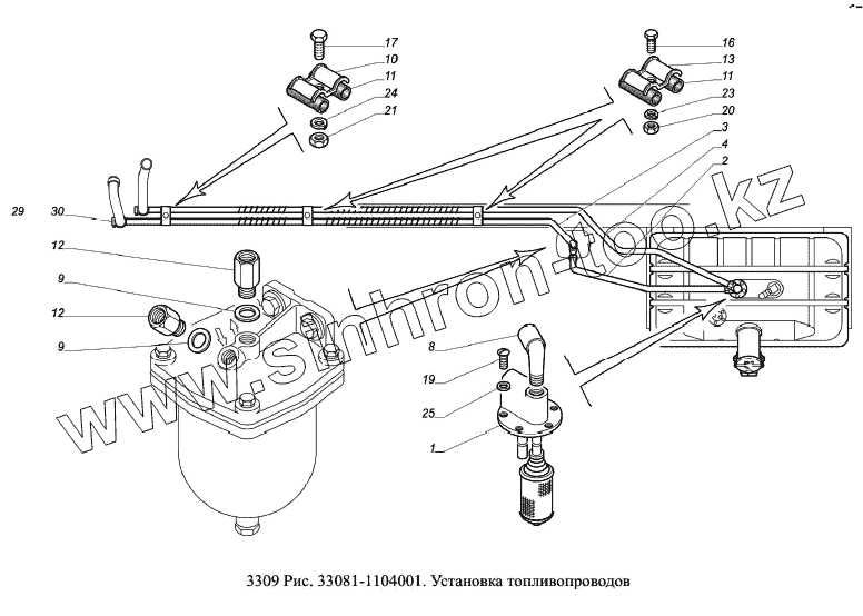 Каталог запасных частей к технике: ГАЗ-3309 (Евро 2). Установка топливопроводов