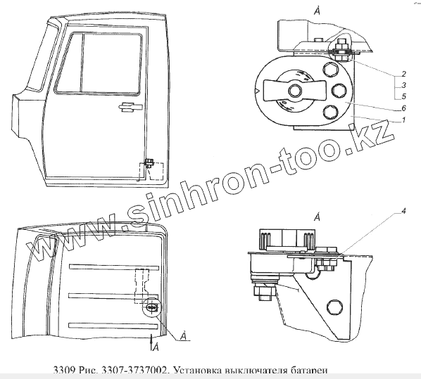 Каталог запасных частей к технике: ГАЗ-3309 (Евро 2). Установка выключателя батареи