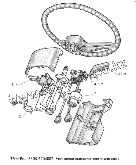 Каталог запасных частей к технике: ГАЗ-3309 (Евро 2). Установка выключателя зажигания