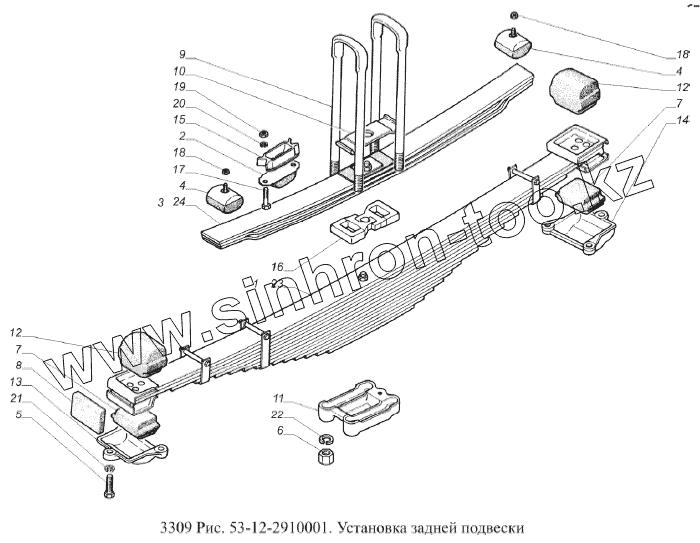 Каталог запасных частей к технике: ГАЗ-3309 (Евро 2). Установка задней подвески
