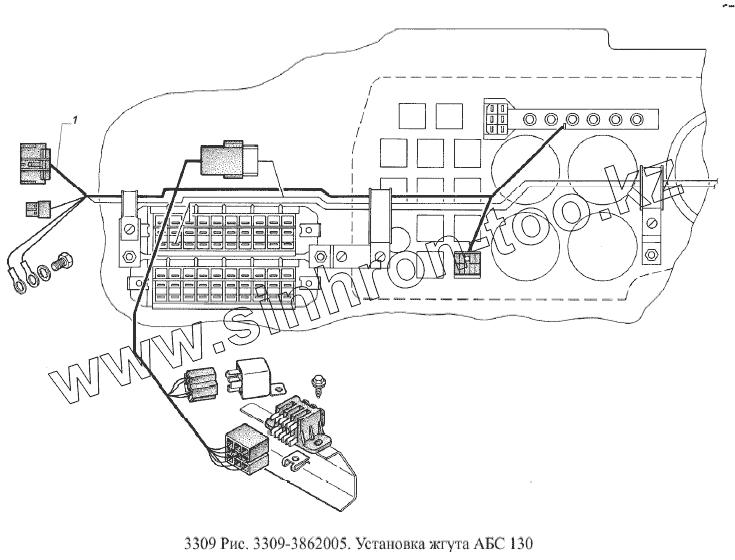 Каталог запасных частей к технике: ГАЗ-3309 (Евро 2). Установка жгута АБС 130