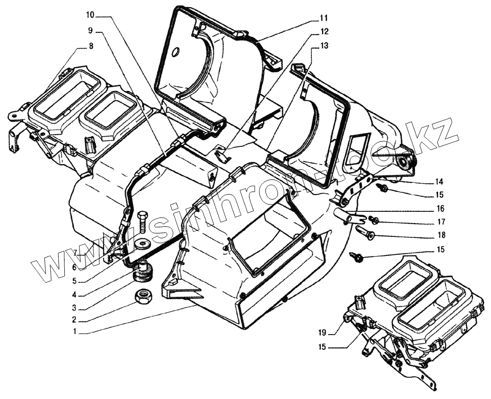 Каталог запасных частей к технике: ГАЗ-33104 Валдай. Детали корпуса отопителя