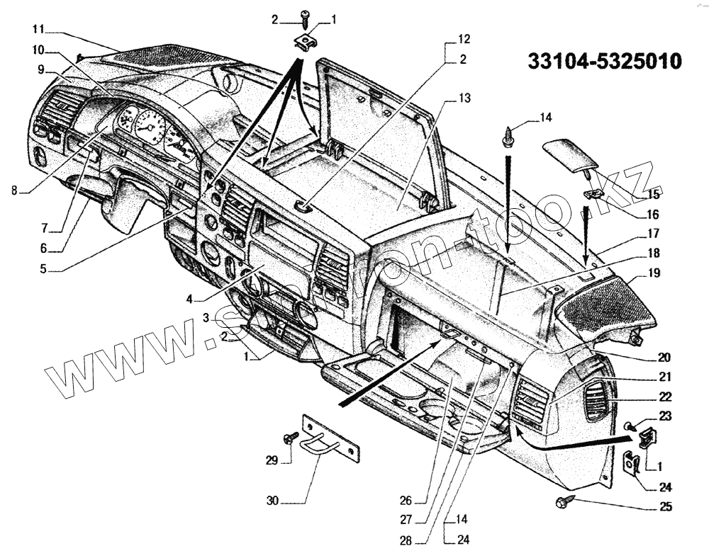 Каталог запасных частей к технике: ГАЗ-33104 Валдай. Панель приборов