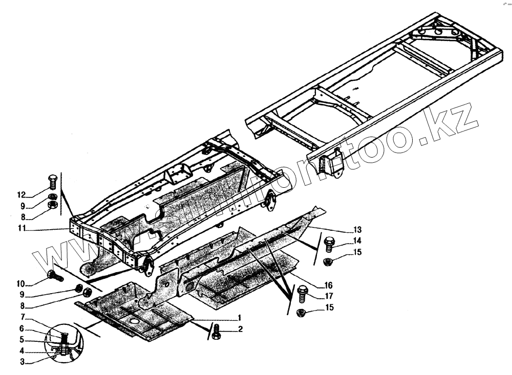 Каталог запасных частей к технике: ГАЗ-33104 Валдай. Рама, брызговики двигателя