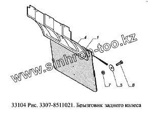 Каталог запасных частей к технике: ГАЗ-33104 Валдай Евро 3. Брызговик заднего колеса