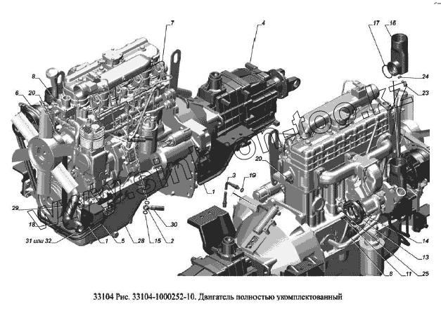 Каталог запасных частей к технике: ГАЗ-33104 Валдай Евро 3. Двигатель полностью укомплектованный