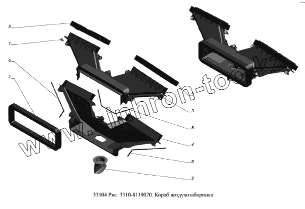 Каталог запасных частей к технике: ГАЗ-33104 Валдай Евро 3. Короб воздухозаборника