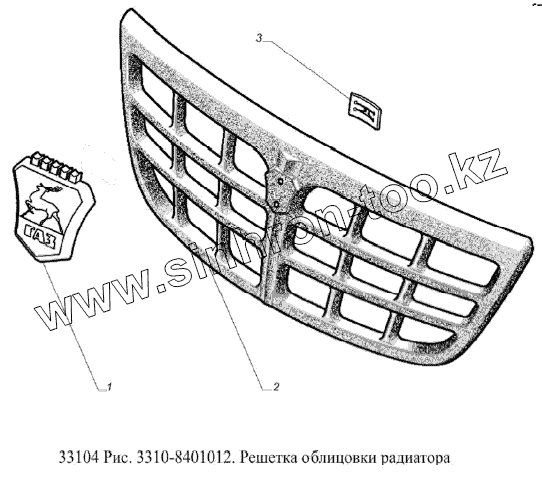 Каталог запасных частей к технике: ГАЗ-33104 Валдай Евро 3. Решетка облицовки радиатора