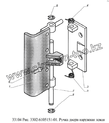 Каталог запасных частей к технике: ГАЗ-33104 Валдай Евро 3. Ручка двери наружная левая