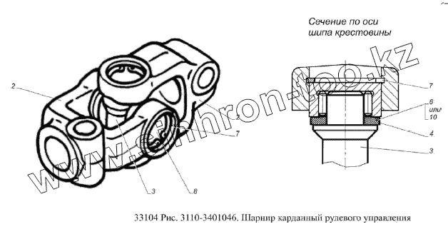 Каталог запасных частей к технике: ГАЗ-33104 Валдай Евро 3. Шарнир карданный рулевого управления