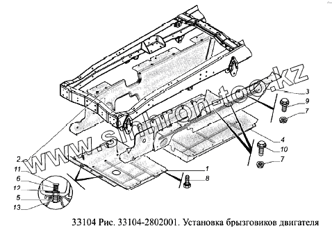 Каталог запасных частей к технике: ГАЗ-33104 Валдай Евро 3. Установка брызговиков двигателя