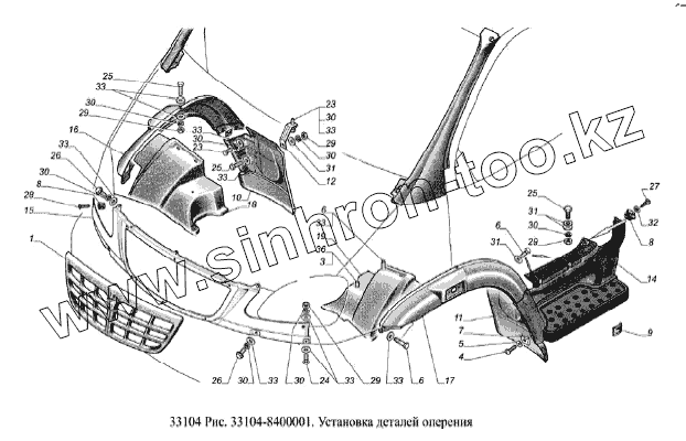 Каталог запасных частей к технике: ГАЗ-33104 Валдай Евро 3. Установка деталей оперения