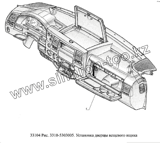 Каталог запасных частей к технике: ГАЗ-33104 Валдай Евро 3. Установка дверцы вещевого ящика