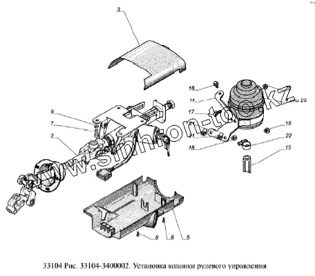 Каталог запасных частей к технике: ГАЗ-33104 Валдай Евро 3. Установка колонки рулевого управления