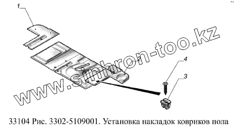 Каталог запасных частей к технике: ГАЗ-33104 Валдай Евро 3. Установка накладок ковриков пола