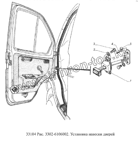 Каталог запасных частей к технике: ГАЗ-33104 Валдай Евро 3. Установка навески дверей