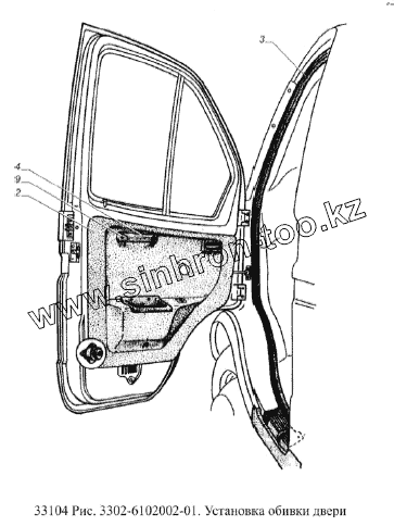 Каталог запасных частей к технике: ГАЗ-33104 Валдай Евро 3. Установка обивки двери
