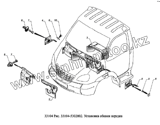 Каталог запасных частей к технике: ГАЗ-33104 Валдай Евро 3. Установка обивки передка