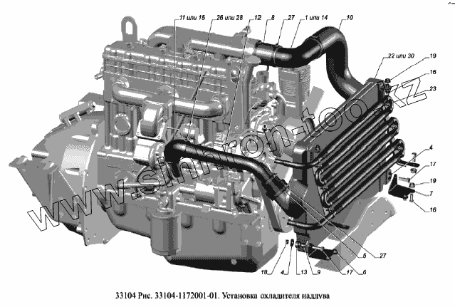 Каталог запасных частей к технике: ГАЗ-33104 Валдай Евро 3. Установка охладителя наддува