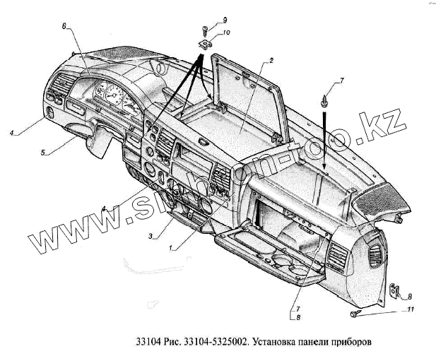 Каталог запасных частей к технике: ГАЗ-33104 Валдай Евро 3. Установка панели приборов